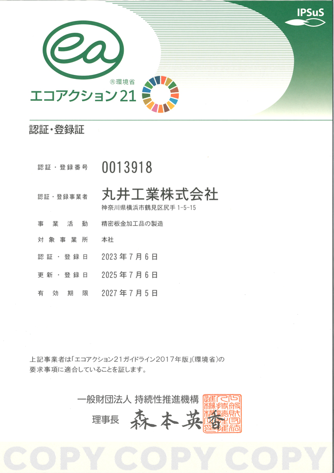コンプライアンスを重視した持続可能な企業として継続的改善に努めてまいります。